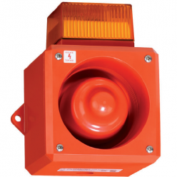 Egensikkert kombinert alarmorgan med både sirene og blink. Fås i flere linsefarger: Gul, rød, blå, grønn og klar.