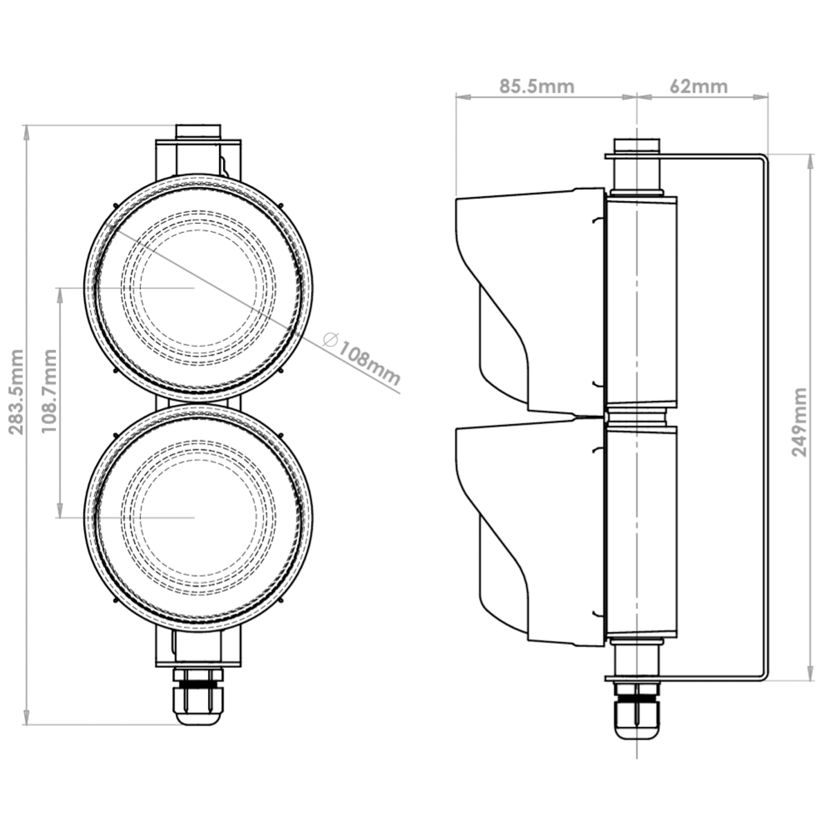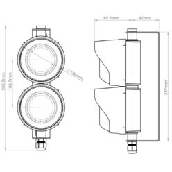 Trafikklys eller såkalt statuslampe med 2 fargede lys i høyden. Monteres med veggfeste.